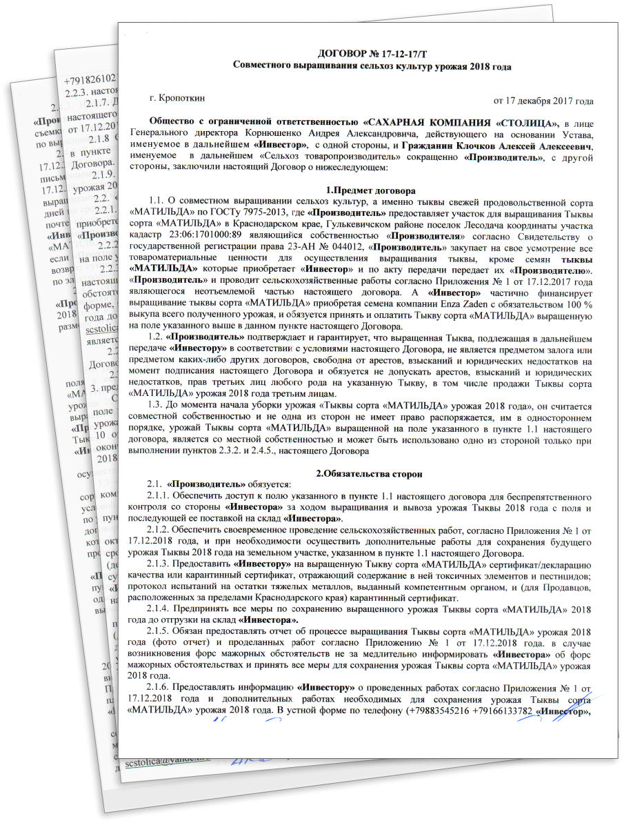 Перед привлечением инвестиций мы тщательно проверили финансовые показатели, юридическую чистоту и обеспечение. Также мы сами заходили в сетевые магазины в Питере, Москве и Краснодаре, подходили к коробкам с тыквой и находили маркировочные наклейки “Поставщик - Столица”